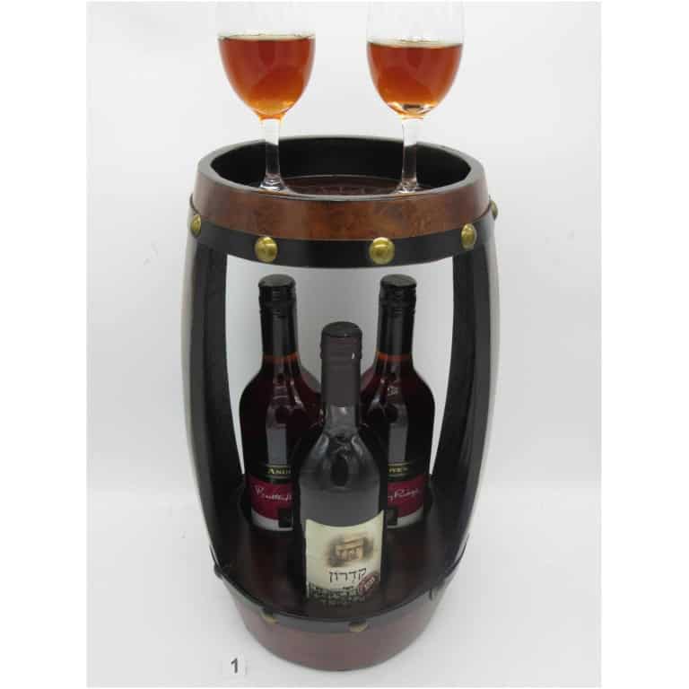 חבית עץ חתוכה-3 בקבוקים + 4 כוסות