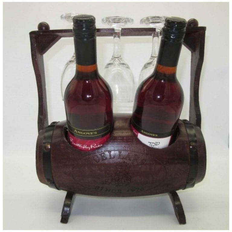 חבית 2 בקבוקים + 3 כוסות עם חריטה