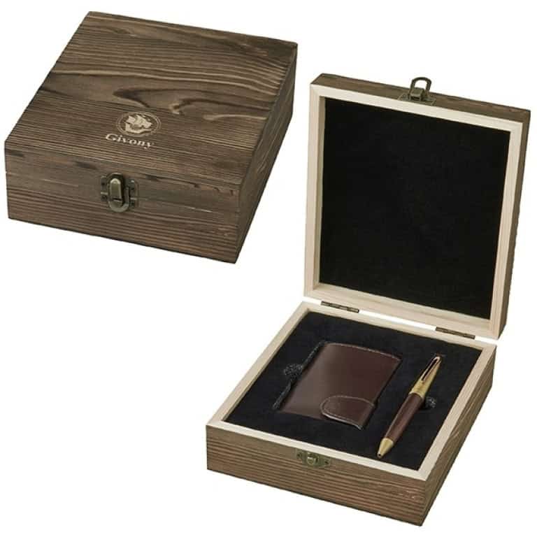 מארז מתנה מעץ עבור ארנק שולף כרטיס אשראי / ביקור ועט מבית המותג גבעוני