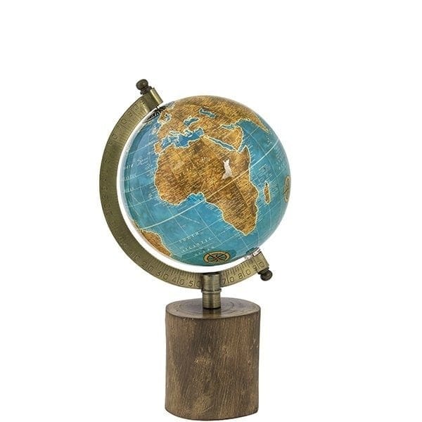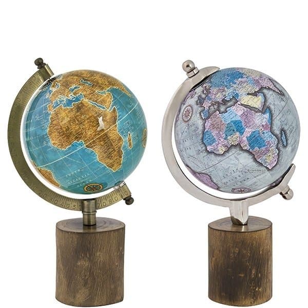 גלובוס מדיני עם קשת מתכת על בסיס עץ עגול