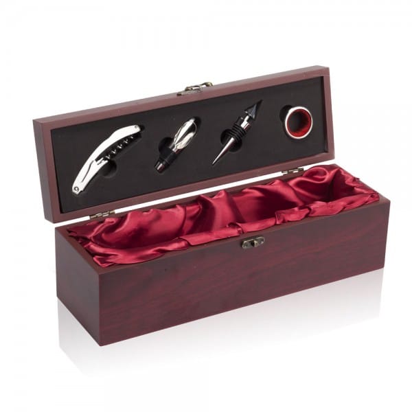מארז עץ מהודר לבקבוק יין עם מגוון אביזרי יין,